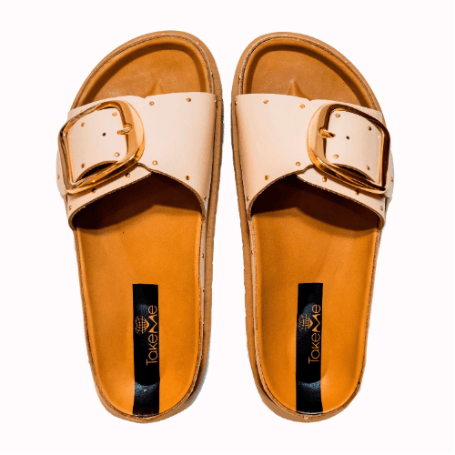 Calzados Quesada — SANDALIA 1 HEBILLA TACHUELAS CREMA · TAKE ME SHOES