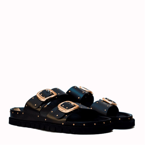 SANDALIA 2 TIRAS TACHUELAS NEGRA